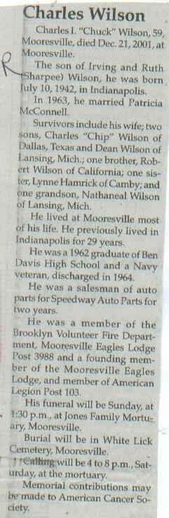 | Survived By | Widow; 2 sons, Charles "Chip" Wilson and Dean Wilson; brother, Robert Wilson; sister, Lynne Hamrick; grandson, Nathaneal Wilson. |
