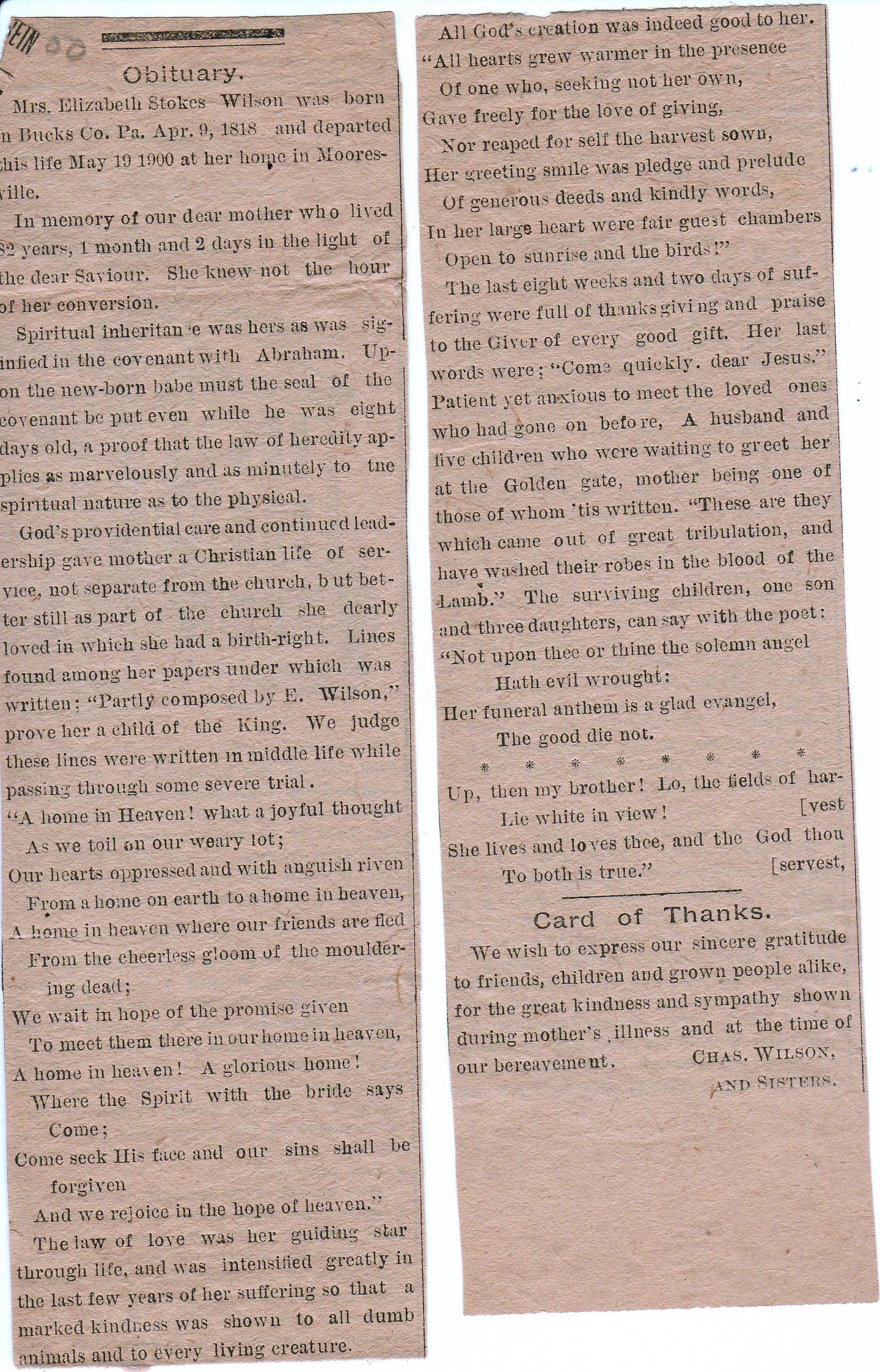 Obituary Source Mooresville Guide, May 25, 1900