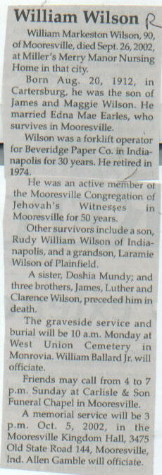 | Survived By | Widow; son, Rudy William Wilson; grandson, Laramie Wilson. |