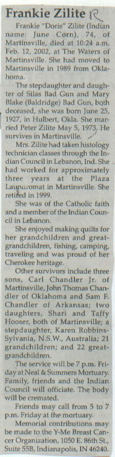 Survived By Spouse; sons, Carl Chandler, Jr. and John Thomas Chandler; 2 daughters, Shari and Taffy Hooser; stepdaughter, Karen Robbins-Sylvania; 21 grandchildren; 22 great-grandchildren.