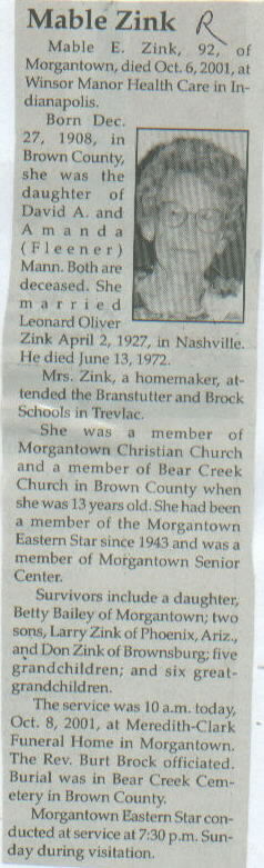 | Other | Born in Brown County, she was the daughter of David A. and Amanda (Fleener) Mann, both deceased. |
